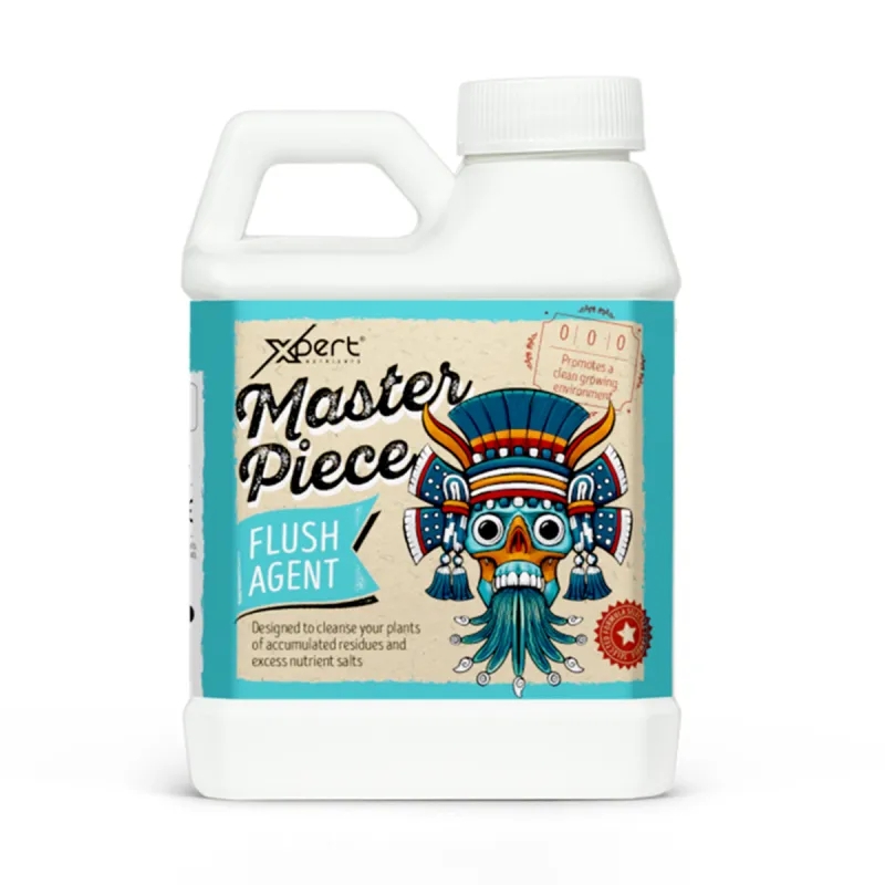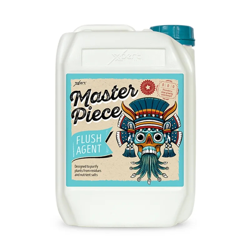 Master Piece është një produkt profesional për fazën përfundimtare të kultivimit, i përdorur 7-10 ditë para korrjes. Ndihmon në largimin efektiv të kripërave të akumuluara të lëndëve ushqyese dhe elementëve të mbetur nga zona e rrënjës dhe substrati, duke ulur EC dhe duke optimizuar ekuilibrin e ujit. Rezultati është një thithje më e pastër, një fund i qëndrueshëm i ciklit dhe cilësi e përmirësuar ndjeshëm e produktit përfundimtar me një shije dhe aromë më të qartë natyrale. I përshtatshëm për tokë, kokos dhe sisteme hidroponike, pa përbërës agresivë ose toksikë.